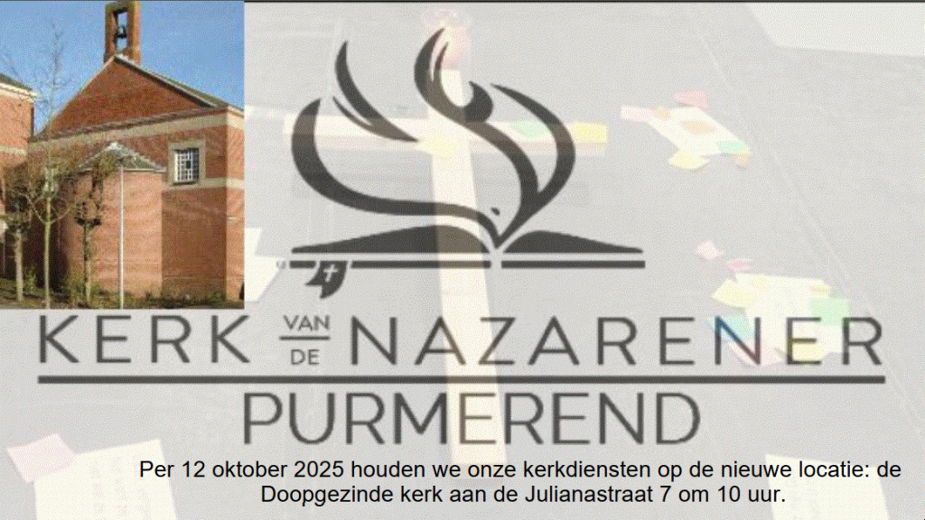 De Kerk van de Nazarener Purmerend is één van de 16 plaatselijke gemeentes van de Kerk van de Nazarener Nederland, elk met hun eigen kleur. We vormen met elkaar een kerkgemeenschap omdat we diep doordrongen zijn van het feit dat God in Christus Zich openbaart als relationele God van Liefde.